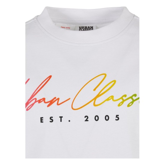 The basic logo tee pleases with its classic, comfy fit and its modern Urban Classics print. The cursive logo lettering extends across the chest in a fancy color gradient. The style is rounded off with a crew neck and slightly dropped shoulders. Offering a relaxed oversize cut and pleasant single jersey cotton, this summery tee is a comfortable companion.