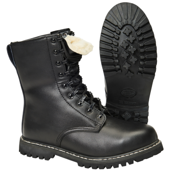 Бойни кубинки естествена кожа с подплата в черно Brandit Para Boot