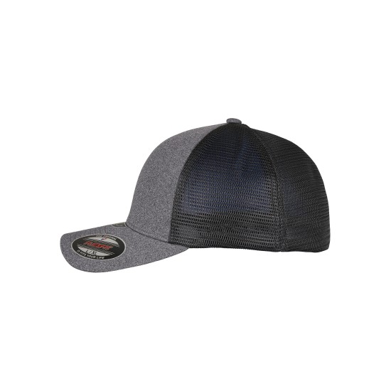 This two-tone trucker cap is made for greatness ? the entire front is seamless and shows a high-quality mottled color design. The back contrasts with a fitting and comfy polyester mesh. The stylish look of the cap is rounded off by a pre-curved and eightfold quilted visor. An integrated Flexfit ribbon ensures an optimal fit, making any other form of closure unnecessary. The masculine cap is a succeeded accessory for every day.