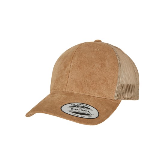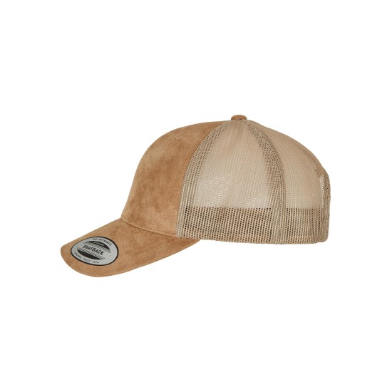 This beautiful trucker cap convinces with a smooth suede look on its front and airy mesh material on its back. Size adjustment is possible by making use of the matching snapback closure. The visor is curved and the employed material of the cap is as robust as it is comfortable.