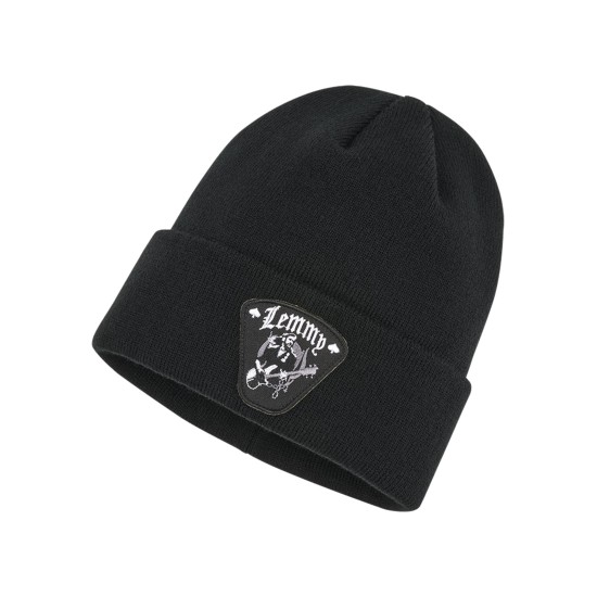- fine-knit cap with embroidered Lemmy patch