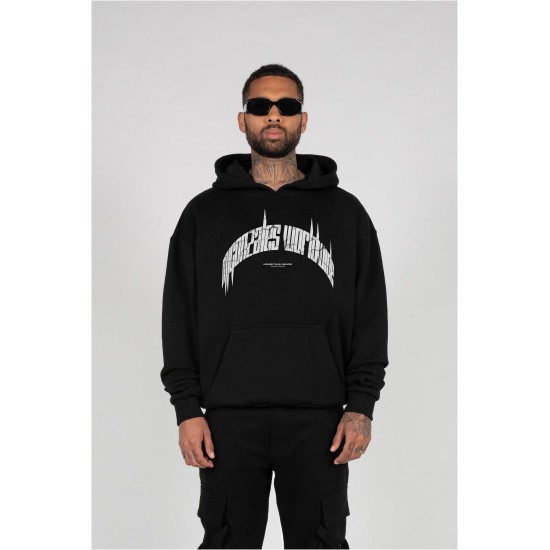 Heavy Oversized MJ Gonzales Hoody in black, usual MJG Fit with hiqh quality Higher Than Heaven print, made from our premium 460gsm. cotton fabric.