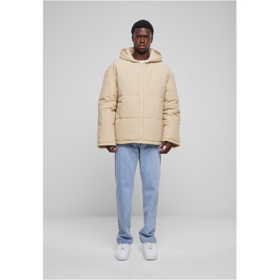 Мъжко яке в цвят пясък Urban Classics Hooded Block Puffe