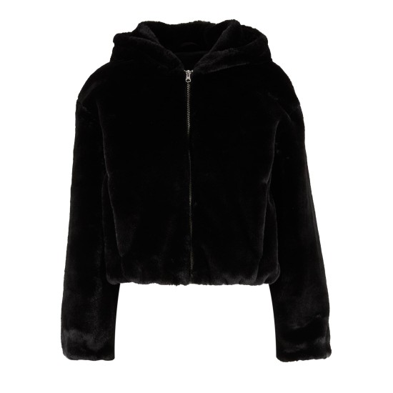 Суичър Ladies Full Zip Faux Fur Hoodie black XS