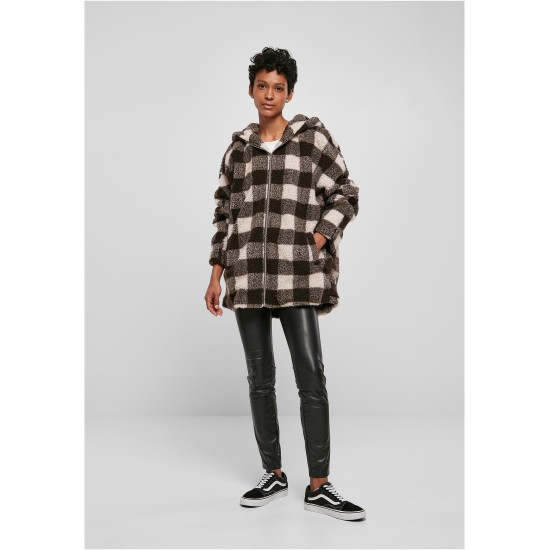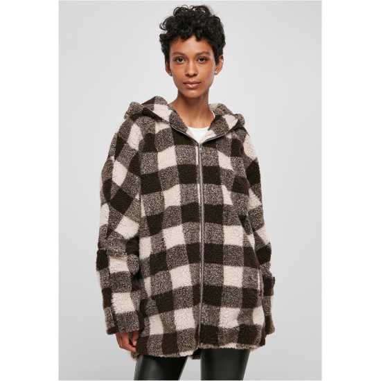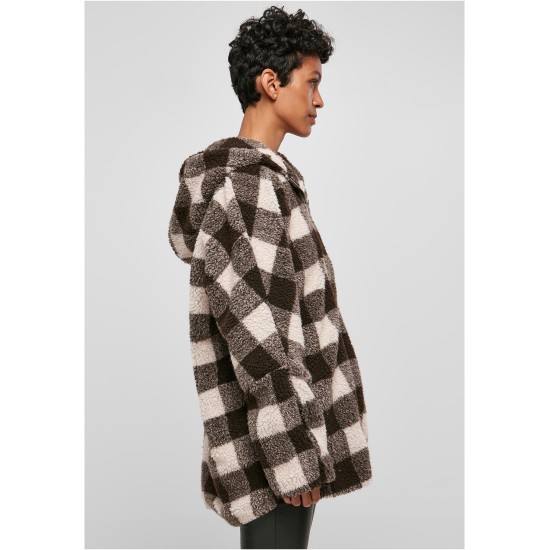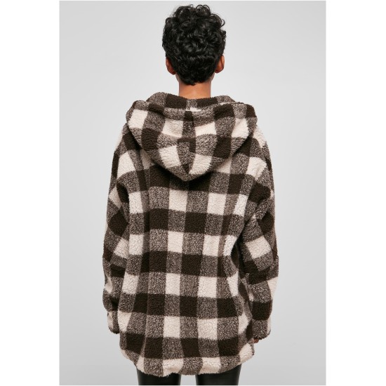 Суичър Ladies Hooded Oversized Check Sherpa Jacket pink/brown XXL