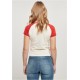 Дамска тениска в цвят екрю с цветни ръкави Urban Classics whitesand/hugered