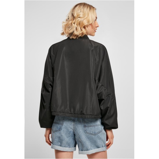 This ladies' batwing bomber jacket effortlessly merges style and practicality. Crafted from a blend of soft and structured materials, it features a water-repellent finish, making it suitable for various weather conditions. The oversized fit and O-shape cut provide a relaxed silhouette, while the stand-up collar and long, cut-on sleeves add a touch of modern flair. Functional details like the zipper closure and patch pocket offer convenience without compromising on style. A versatile addition to any wardrobe, this jacket is designed with comfort in mind for everyday wear.